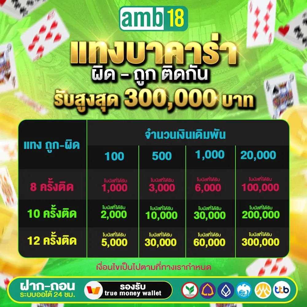 AMB18 ใช้ระบบฝาก–ถอนแบบออโต้ตลอด 24 ชั่วโมง ผู้เล่นสามารถทำรายการได้ด้วยตนเองโดยไม่ต้องรอเจ้าหน้าที่ เมื่อฝากเงิน เครดิตจะเข้าสู่บัญชีอย่างรวดเร็ว และเมื่อถอนเงิน ระบบจะดำเนินการโอนกลับตามขั้นตอนที่กำหนด ความโปร่งใสของระบบช่วยให้ผู้เล่นสามารถตรวจสอบประวัติธุรกรรมย้อนหลังได้อย่างชัดเจน และวางแผนการเงินได้อย่างเป็นระบบ